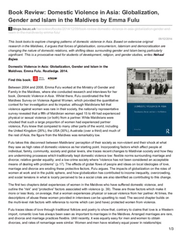 Book review: domestic violence in Asia: globalization, gender and Islam in the Maldives by Emma Fulu