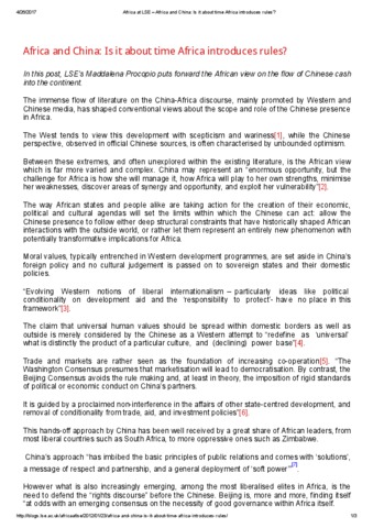 In this post, LSE’s Maddalena Procopio puts forward the African view on the flow of Chinese cash into the continent..