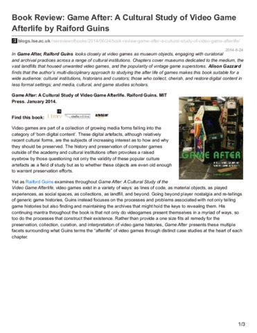 Book review: game after: a cultural study of video game afterlife by Raiford Guins
