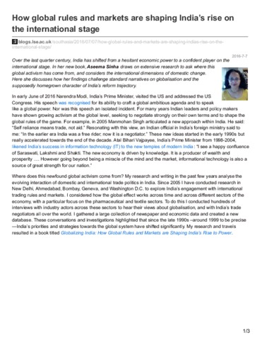 How global rules and markets are shaping India’s rise on the international stage