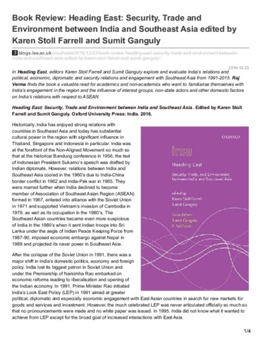 Book review: heading east: security, trade and environment between India and Southeast Asia edited by Karen Stoll Farrell and Sumit Ganguly