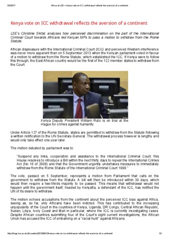 LSE’s Christine Skrbic analyses how perceived discrimination on the part of the International Criminal Court towards Africans led Kenyan MPs to pass a motion to withdraw from the Rome Statute.