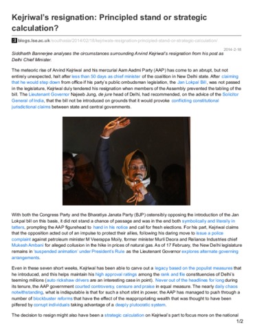 Siddharth Bannerjee analyses the circumstances surrounding Arvind Kejriwal’s resignation from his post as Delhi Chief Minister.