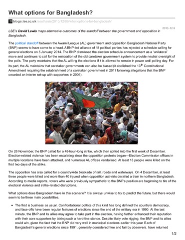 LSE’s David Lewis maps alternative outcomes of the standoff between the government and opposition in Bangladesh.