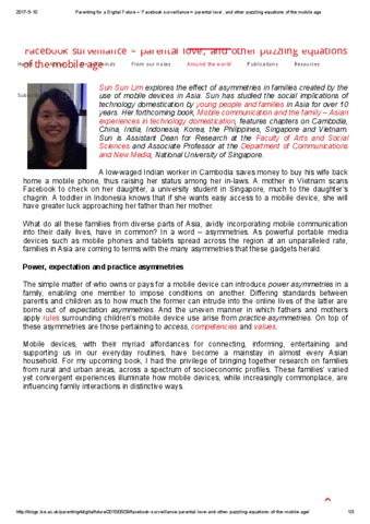 ‘Facebook surveillance = parental love’, and other puzzling equations of the mobile age.