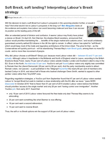 Soft Brexit, soft landing? Interpreting Labour’s Brexit strategy.