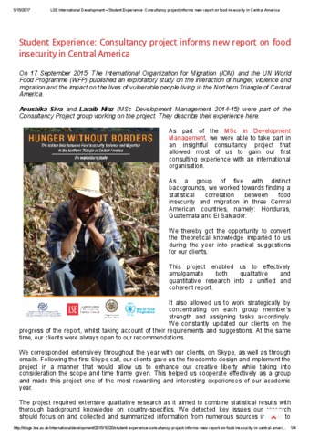 Student Experience: Consultancy project informs new report on food insecurity in Central America