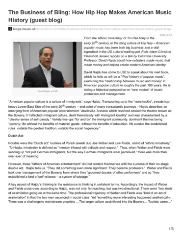 The business of bling: how Hip Hop makes American music history (guest blog).