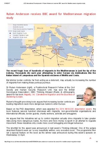 Ruben Andersson receives BBC award for Mediterranean migration study.