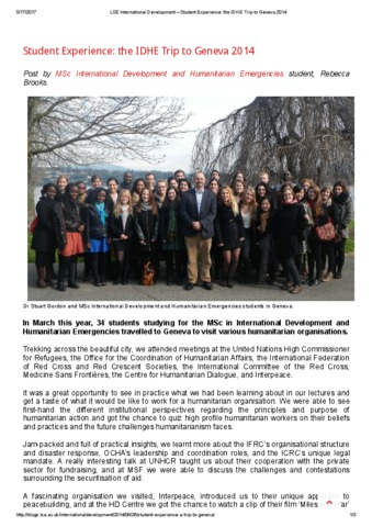 Post by MSc International Development and Humanitarian Emergencies student, Rebecca Brooks.