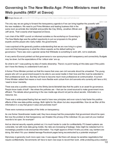 Governing in the new media age: Prime Ministers meet the web pundits (WEF at Davos)