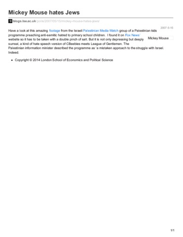 Have a look at this amazing footage from the Israeli Palestinian Media Watch group of a Palestinian kids programme preaching anti-semitic hatred to primary school children.