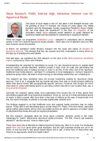 Nesta Research: Public Interest High, Advertiser Interest Low for Hyperlocal Media.