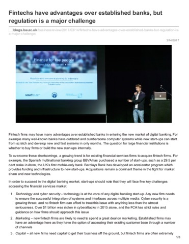 Fintechs have advantages over established banks, but regulation is a major challenge.