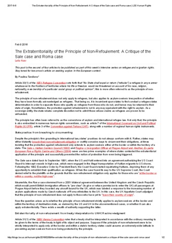 The extraterritoriality of the principle of non-refoulement: a critique of the Sale case and Roma case