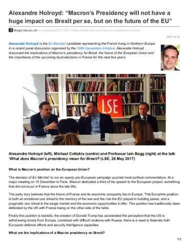 Alexandre Holroyd: “Macron’s Presidency will not have a huge impact on Brexit per se, but on the future of the EU”