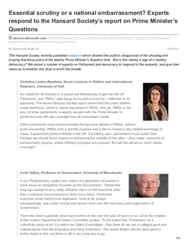Essential scrutiny or a national embarrassment? Experts respond to the Hansard Society’s report on Prime Minister’s Questions.