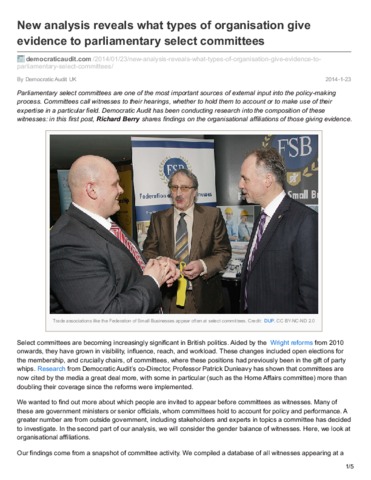 New analysis reveals what types of organisation give evidence to parliamentary select committees.