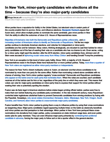 Minor parties have a reputation for futility in the United States, but electoral rules in certain parts of the country enable them to survive, thrive, and influence elections. Benjamin Kantack argues that fusion laws, which allow multiple parties to nominate the same candidate, give minor parties in New York the ability to affect the outcomes of close U.S. House of Representatives races.
