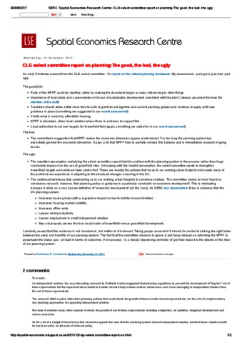 An early Christmas present from the CLG select committee - it's report on the national planning framework. My assessment - part good, part bad, part ugly.