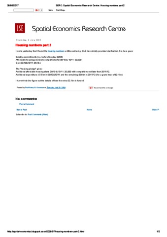 I wrote yesterday that I found the housing numbers a little confusing. CLG have kindly provided clarification. So, here goes: Existing commitments (i.e. before Monday 29/06) Affordable housing provision (completions) for 09/10 & 10/11: 90,000 Cost 09/10&10/11: £6.4bn