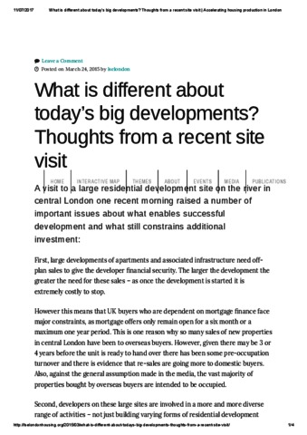 A visit to a large residential development site on the river in central London one recent morning raised a number of important issues about what enables successful development and what still constrains additional investment: