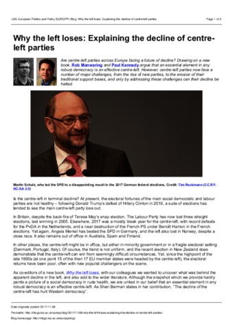 Why the left loses: explaining the decline of centre-left parties.