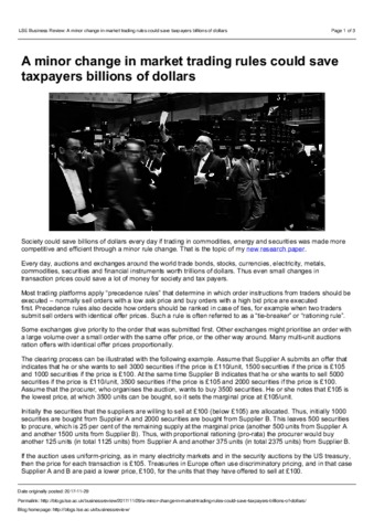When ties occur at low offer prices, higher priority should be given to sell orders with a large volume, writes Pär Holmberg