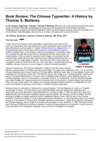 Book review: the Chinese typewriter: a history by Thomas S. Mullaney