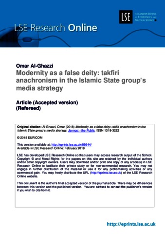 Modernity as a false deity: takfiri anachronism in the Islamic State group’s media strategy