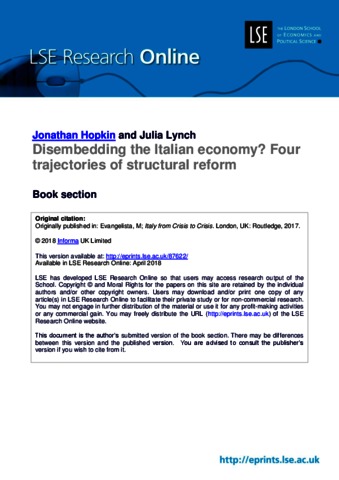 Southern Europe’s debtor nations need far-reaching structural reforms if they are to prosper within the strictures of the single currency, runs the constant refrain of the Euro crisis. 1 Yet Italy, the target of many such recent complaints, had already transformed its economy fundamentally over the past two decades, among other reasons in order that Italy could participate successfully in the Economic and Monetary Union (EMU). The need to comply with the Maastricht convergence criteria drove major budgetary reforms in the mid- to late 1990s, as well as banking reform, privatization, decentralization, judicial reform, deregulation, and changes to the labor market and the welfare system. Europe provided a “vincolo esterno” or external constraint (Dyson and Featherstone 1996) that pushed Italy into accepting structural reforms which would otherwise have been resisted. Italy was “rescued by Europe” (Ferrera and Gualmini 2004).
