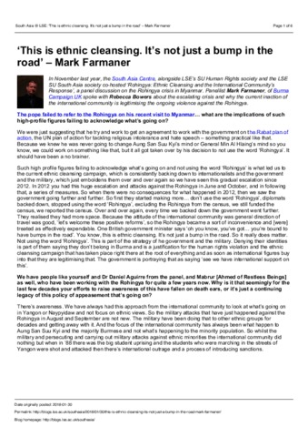 In November last year, the South Asia Centre, alongside LSE's SU Human Rights society and the LSE SU South Asia society co-hosted 'Rohingya: Ethnic Cleansing and the International Community's Response', a panel discussion on the Rohingya crisis in Myanmar. Panellist Mark Farmaner, of Burma Campaign UK spoke with Rebecca Bowers about the escalating crisis and why the current inaction of the international community is legitimising the ongoing violence against the Rohingya.