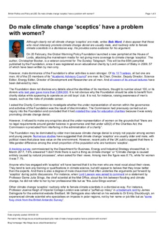 Although clearly not all climate change 'sceptics' are male, writes Bob Ward, it does appear that those who most intensely promote climate change denial are usually male, and routinely refer to female climate scientists in a dismissive way. He provides some evidence for his argument.