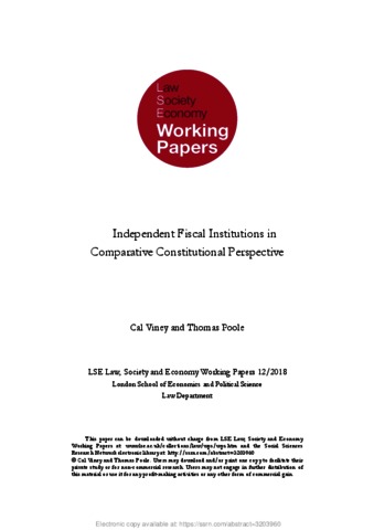 Independent Fiscal Institutions (IFIs), also known as independent budget offices, fiscal policy councils or independent fiscal watchdogs, have become a feature of the regulatory landscape since the global financial crisis. This paper analyses their proliferation and seeks to situate them in their constitutional and institutional environment. The paper begins with an assessment of the two competing rationales for their existence: first, the rationale of overcoming deficit bias in advanced western democracies (through institutions of de-politicisation), and second, the rationale of overcoming information asymmetry on two planes – elector/government fiscal information asymmetry and legislature/executive information asymmetry (strategies of re-politicisation). The paper then analyses the legal and technical design features of two IFIs: the UK Office for Budget Responsibility (OBR) and the Australian Parliamentary Budget Office (PBO). We hypothesise that whatever their origin, IFIs will seek to add functions, that these will include both inward-facing functions (e.g. official economic forecasting) and outward-facing functions (e.g. election policy costings), and that this expansion is likely to be facilitated by inter-party competition. We conclude that the IFI is best understood as a distinctive attempt to devise a fiscal self-binding mechanism in the interests of securing intergenerational constitutional justice.