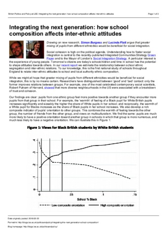 Drawing on new research, Simon Burgess and Lucinda Platt argue that greater mixing of pupils from different ethnicities would be beneficial for social integration.